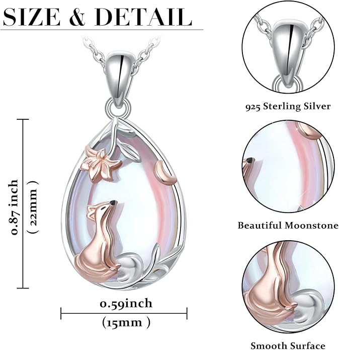 - ✨🦊Fox Jewelry Present for Women: Moonstone fox necklace is perfect for expressing your love to your loved one! An ideal jewelry for mom, wife, daughter, sister or fox-loving friends. Suitable for Birthday, Christmas'Day, Mother's Day, Graduation, Thanksgiving, Anniversary, Prom, Holiday or any special occasions surprise!
