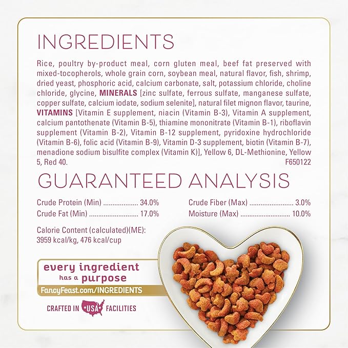 Dry Cat Food Filet Mignon Flavor with Seafood and Shrimp, Lightly Cooked and Basted to A Delicious, Delicately Crunchy Finish