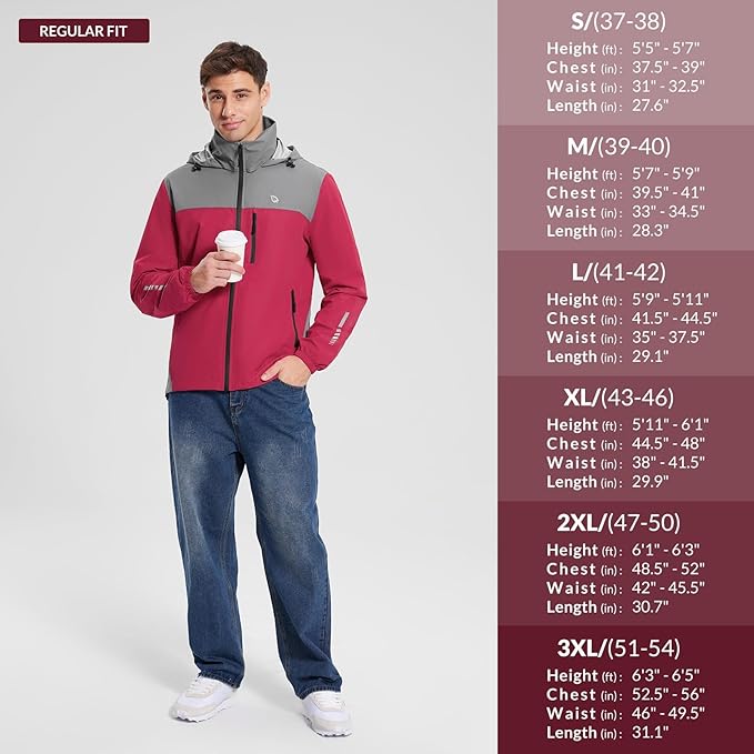 • Multi Pockets & Packable: Mens jacket comes with 1 zippered chest pocket, 2 secure-zip hand pockets and 1 zippered back pocket can are more convenient to secure your items. It can be packed into its own back pocket - stowing away for hiking, bike touring, or any travel.
