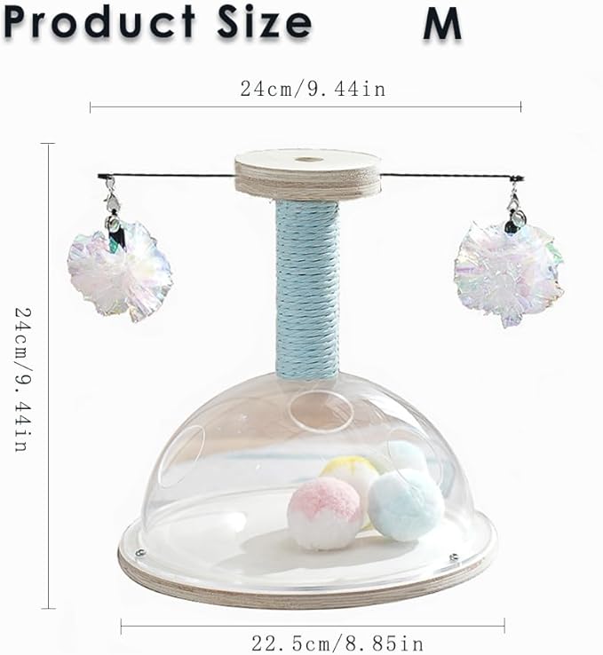 - Not easy to overturn: The cat turntable toy is made of high-quality natural solid wood.It's heavy enough to withstand the cat's crazy scratching, pouncing the playing balls, not easy to tip.