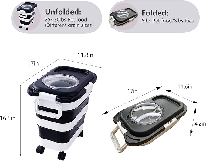 25 lbs Dog Food Storage Container,Collapsible Dog Food Container with Travel Silicone Bowl and Scoop,Pet/Dog/Cat/Bird Food/Cat litter Storage Containers to Keep Dry,Easy to Move.(Black)