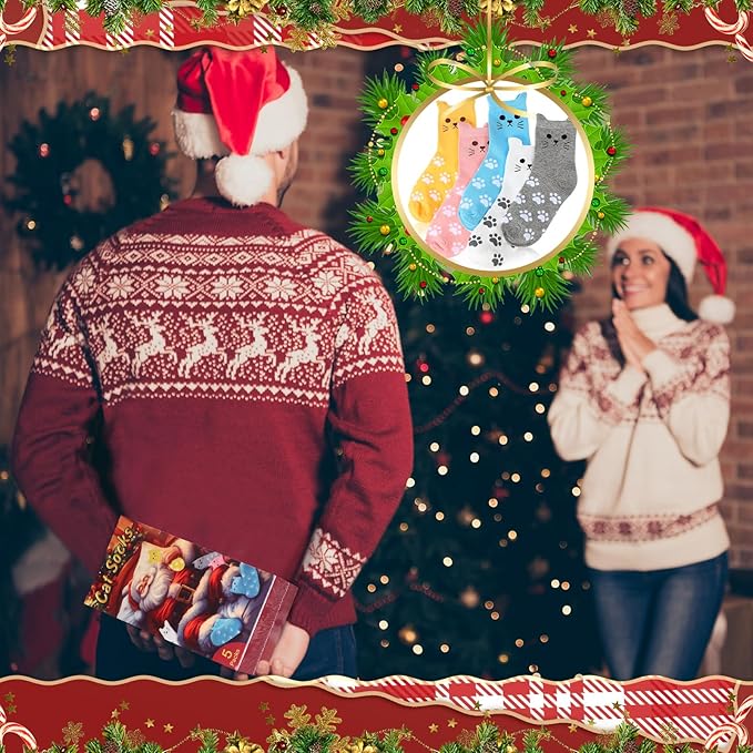 5 Pcs Women's Cat Socks Christmas Stocking Stuffers for Women Funny Christmas Gift Box White Elephant Gift Exchange Ideas for Teenage Girls Girlfriend Animal Lovers