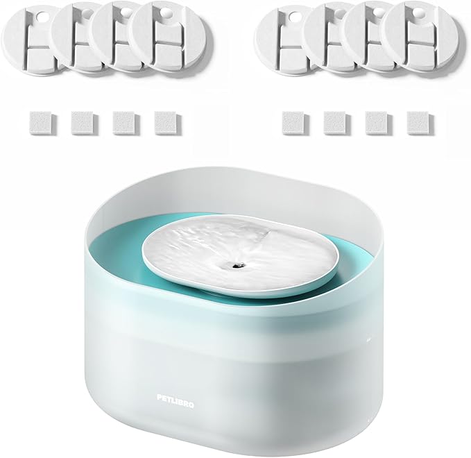 - The Key to Clean Water - PETLIBRO's choice of superior materials guarantees top-tier water cleanliness through the 5-layer filtration system of the pet fountain filter. This system can efficiently filter out impurities such as fur, heavy metals, and unpleasant odors. The five layers comprise non-woven fabric, ion-exchange resins, activated carbon, silver particle ceramic balls, and a sponge.