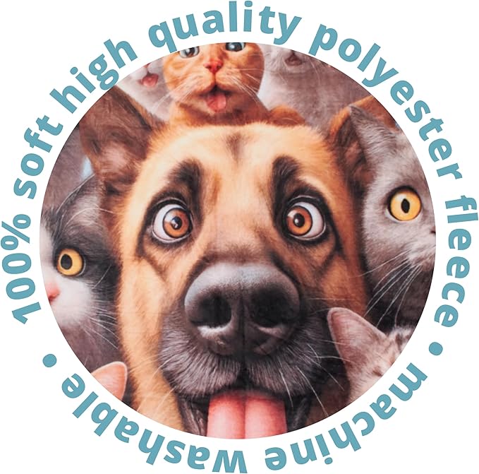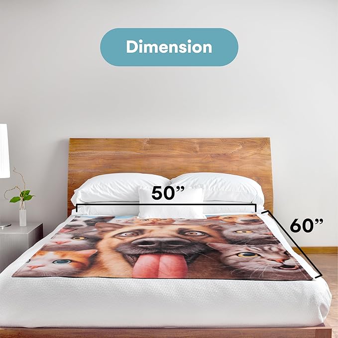 - Fleece Throw Blanket: Adorned with dogs and cats taking selfies, this fleece blanket throw for kids measures 60.6x48.8 inches, adding a playful, stylish touch to any room; perfect for animal-themed decor or as a standout piece