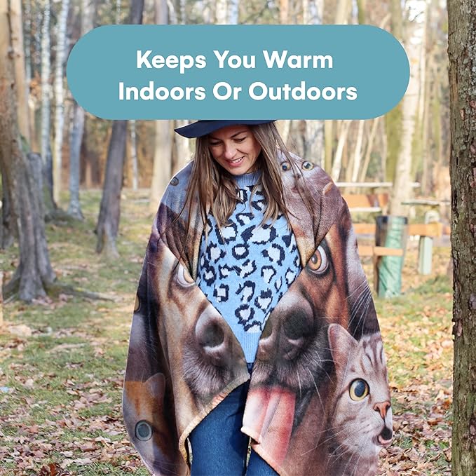 - Selfie Cat and Dog Fleece Blanket: Wrap yourself in the luxurious softness of this plush fleece blanket, offering warmth and comfort without the bulk; ideal for staying cozy during chilly nights or lazy afternoons
