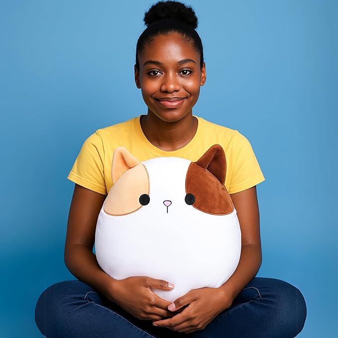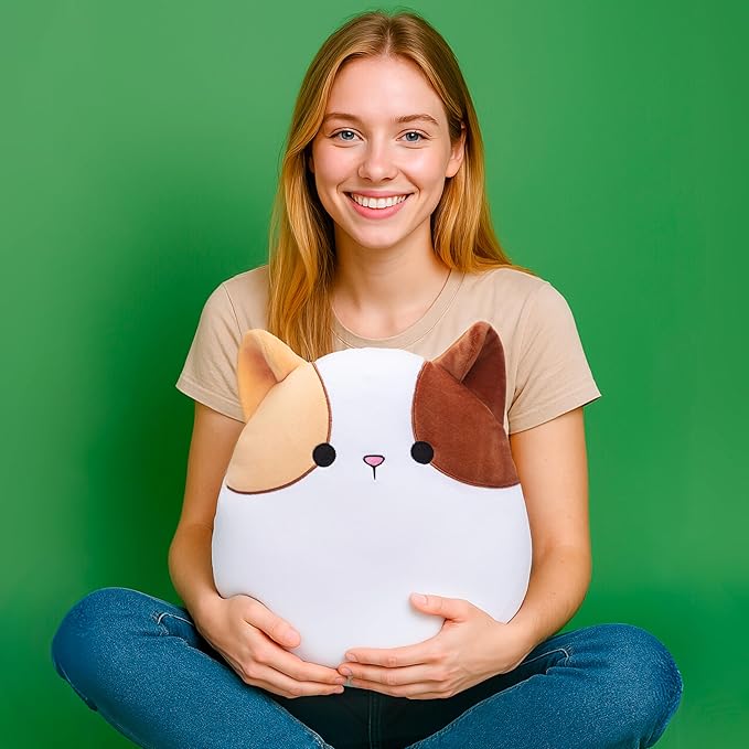 Original 12.5-inch Large Calico Cat Plush Pillow Stuffed Animal Toy,Big Size Cute Soft Fat Hugging Cuddle Huggable Plushie,Gift for Kids