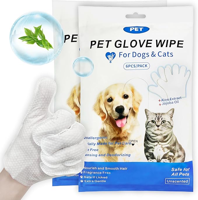 Dog Wipes Cleaning deodorizing, Extra Thick Dog Wipes, Dog Washing Gloves for Daily pet Care and Travel, 6 PCS (Blue Packing, Extra-Thick)