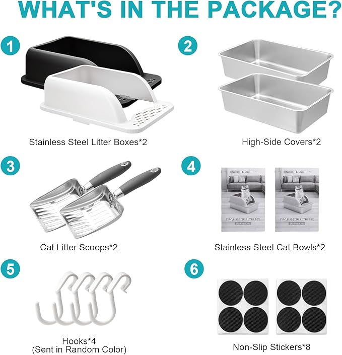 - 2 Pack Stainless Steel Cat Litter Box for Big Cats or Multiple: The convenient set includes 2 extra large cat litter boxes, and 2 litter box scoops, definitely a good choice for big cats and multi-cat families!