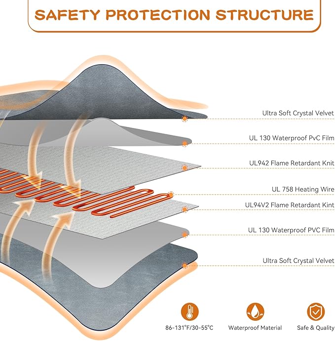 - 【Safety and Secure Structure】8-layer protective structure dog cat heated bed is made of soft removable machine washable velvet cover, the inner is a PVC envelope with waterproof and preventing fires function. The dog cat heating pad outdoor waterproof has a built-in smart temperature sensor to prevent overheating and protect your pet. - Keep the heated dog blanket pad flat when in use (do not fold)
