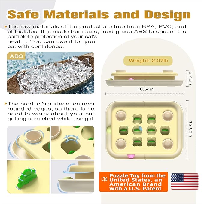 - [Safe Material & Design] The toy is made from food-grade ABS, which is extremely sturdy and enduring. It contains no BPA, PVC, or phthalates. The product's surface features a rounded design, ensuring cats won't get scratched while playing. The materials and the product are very safe, so you can confidently give it to your cat.