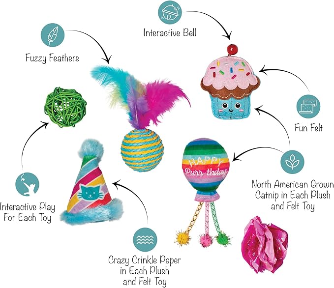 Fringe Studio "Happy Purr-THDAY, Set of 6, Multipack Cat Toy Set, Pet Shop Collection (610007)