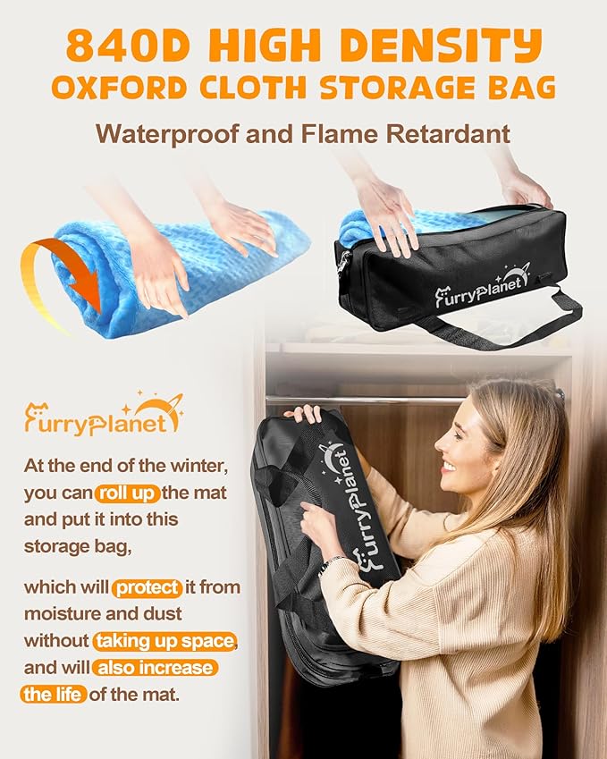 - 👍840D High Density Oxford Cloth Storage Bag: The bag is made of Waterproof and Flame Retardant material. At the end of the winter, you can roll up the mat and put it into this storage bag, which will protect it from moisture and dust. At the end of the winter, you can roll up the mat and put it into this storage bag, which will protect it from moisture and dust without taking up space, and will also increase the life of the mat.