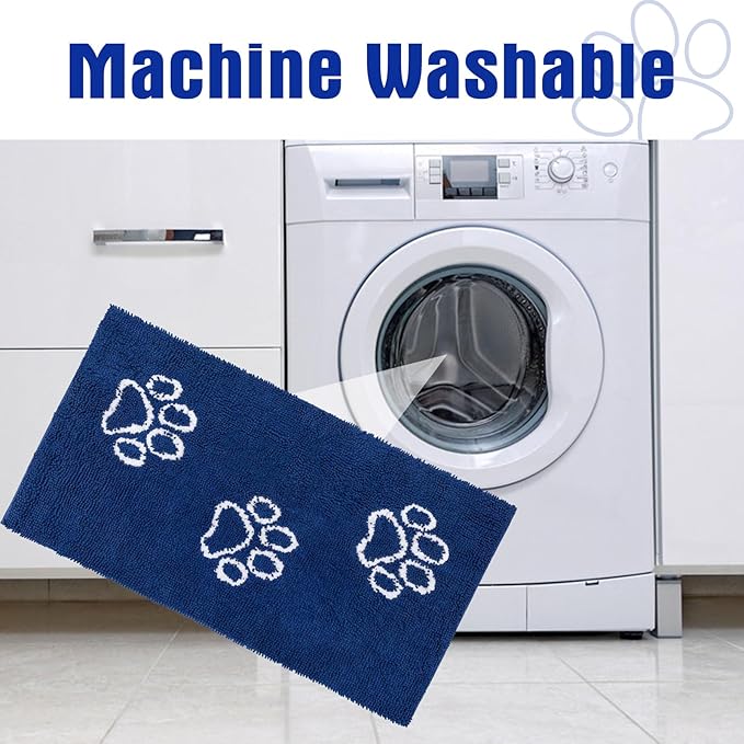 EXPAWLORER Dog Door Mat for Muddy Paws - Highly Absorbent Microfiber Dog Rug, Soft Chenille Dog Runner Rug Indoor Outdoor Floor, Non-Slip Large Pet Paw Cleaning Washable Mud Mat for Bathroom, Blue