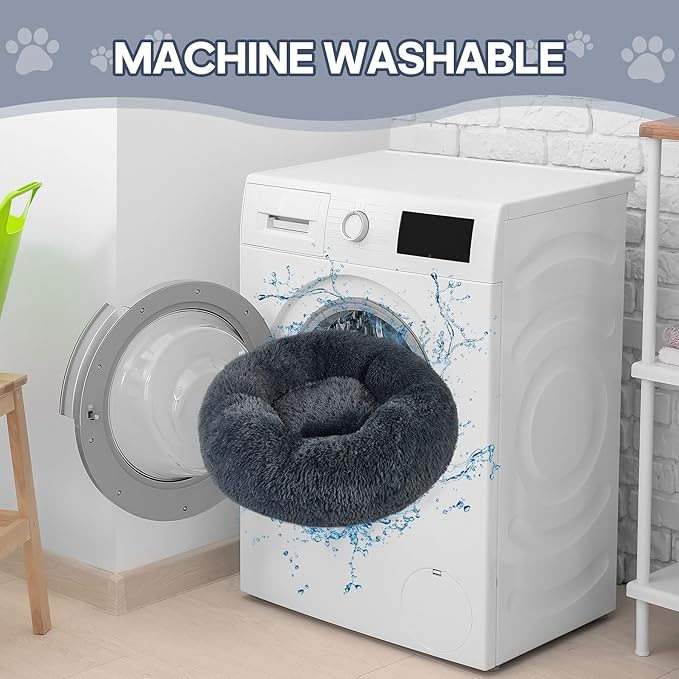 - 【Notice】Dog donut bed is stored and shipped compressed, rolled and vacuum sealed in a vacuum bag. Please put the fluffy cat bed in the dryer at the low temperature drying for a few minutes, then give it a gentle pat and shake make the fuzzy dog bed completely fluffy before use, and manually adjust the cozy dog bed to the desired shape.