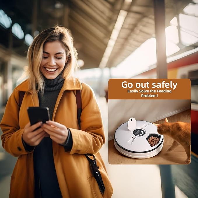 - 【Precise Portion Control】With a built-in timer, this auto pet feeder features 6 compartments for use with dry, moist, and wet food or even treats and medicines. Hensis automatic cat feeder delivers precise portions and dispenses small amounts of food at certain intervals. Ideal for cats, small dogs, dieting pets, aging pets, or other pets that require more frequent feeding or with special needs.