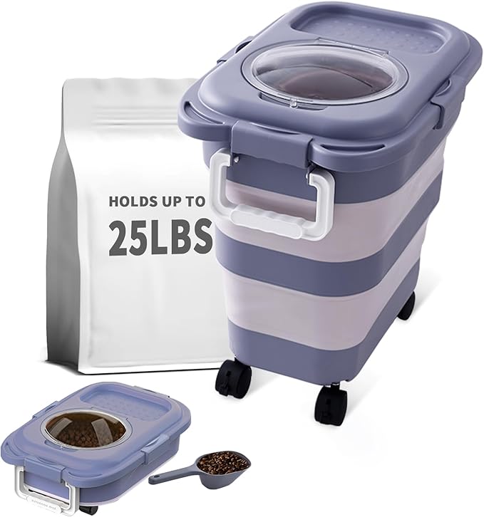 25 Lbs Dog Food Storage Container, Collapsible Dog Food Container with Scoop for Pet/Dog/Cat/Bird Food,Keep Dry Food Fresh,Easy to Move (Blue)