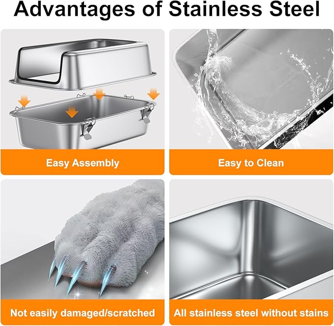 - Ⅱ『Litter Box Quality』The litter box is made of high quality stainless steel Meanwhile the stainless steel litter box is not prone to scratches and dents during use and stays beautiful.(Please do not scratch the metal with excessive force)