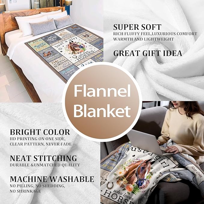 Horse Blanket for Girls and Women, Just A Girl Who Loves Horses Throw, Lovers Birthday Gifts Decor 50" x 40"