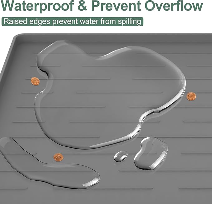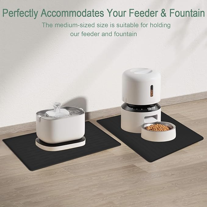 - 【Use in Multiple Scenarios】Our food mat is suitable for pet food and water bowls, fountains, raised feeders, and automatic feeders. It can be placed anywhere in the living room or kitchen and uses as a temporary dining spot while traveling with pets. What's more, it can function as an under-sink tray, shoe mat tray, boot mat tray, or cat feeding mat.