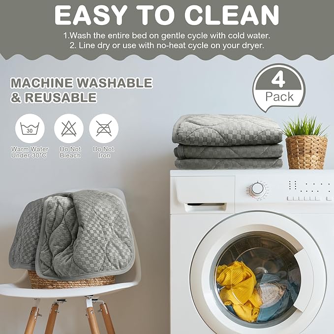4 Pack Self Warming Cat Bed 16 x 20 Self Heating Cat Mat Warm Thermal Pet Pad Washable Dog Crate Pad Body Heat Dog Cat Bed Mat Blanket Non Slip Bottom for Outdoor Indoor Pets (Light Grey)