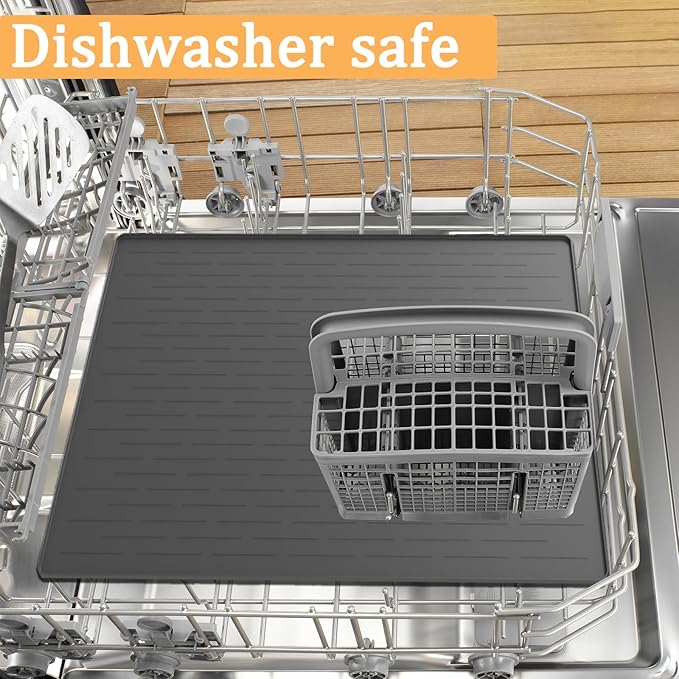 32"x24" Large Silicone Pet Feeding Mat, Waterproof Non-Slip Dog and Cat Bowl Mat for Food & Water, Durable Floor Protector to Prevent Spills, Easy to Clean, Dark Gray