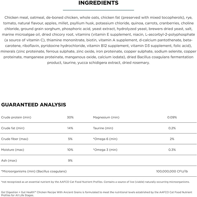 Go! Solutions Digestion + Gut Health, Dry Cat Food, Chicken Recipe with Ancient Grains, 3 lb Bag