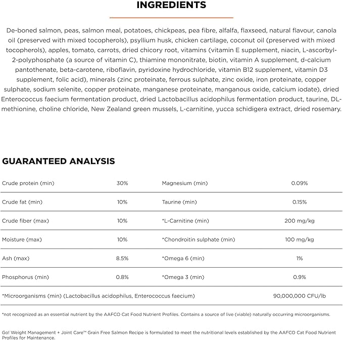 Go! Solutions Weight Management + Joint Care, Grain-Free Dry Cat Food, Salmon Recipe, 6 lb Bag