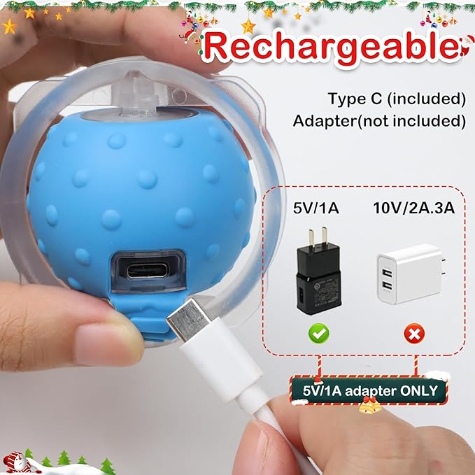 - View pic 5 - Rechargeble cat ball come with type c cable,easily fully charge within 2-3hrs. ***Choose 5V/1A adapter will more compatiable. Lights flashing when charge, keeping on when fully charged, view user guide to get more detail