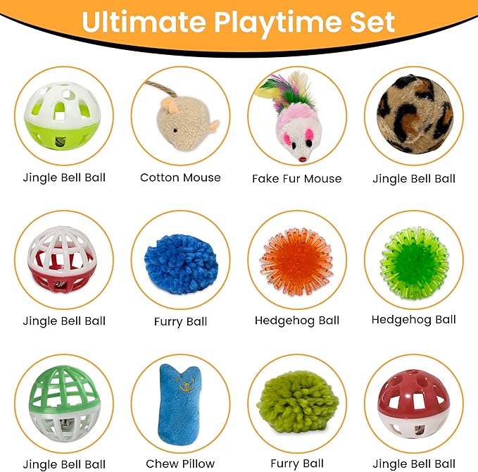 - Includes 12-Pcs Cat Toy Set: The Jinkenz cat bed cave includes a 12-pcs cat toy set for pouncing, chasing, and interactive play, supporting your cat’s instincts, promoting development and stimulation.
