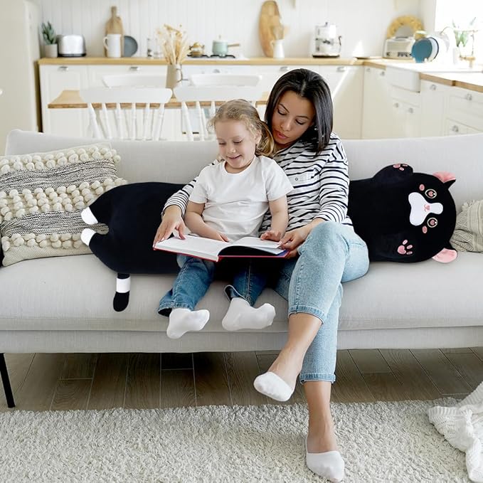 - Warm Gifts: Long animal cat body pillow is suitable for all ages. The long stuffed cat plush is lovely, soft and healing. It is very suitable for gift to children, family, classmates, friends, girlfriend. It is an ideal gift for important days such as Christmas, Thanksgiving, Children's Day, Valentine's Day, birthdays, etc.