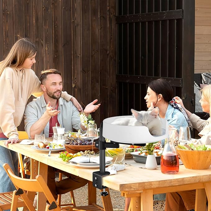 - 360°ROTATION,HEIGHT ADJUSTABLE AND 45°ROTATION WITH SECONDARY MOVABLE ARM :The kitten bed can spin a full 360° around the post and adjusts height vertically. Moreover,there is a secondary movable arm for 45°rotation.You can quickly adjust the angle and distance between you and your kitten