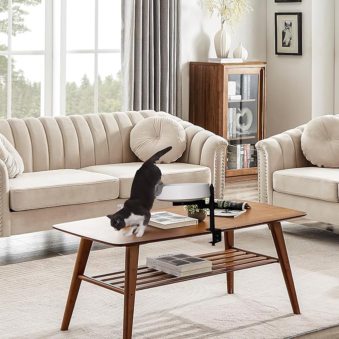 - EASY ASSEMBLY: With a simple setup, this desk-mounted elvated cat bed perch can be easily installed and adjusted to your desired height.No extra tools or desk modifications are required--screwdriver and hexagon wrench included