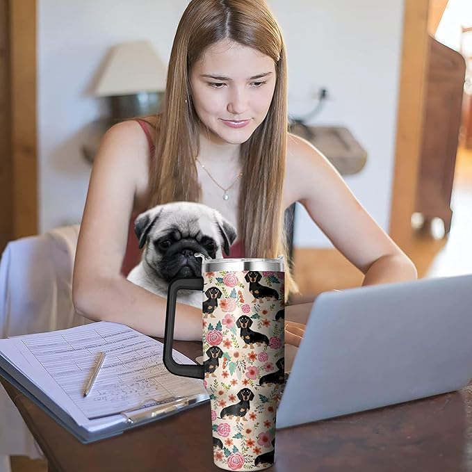 - 40 Oz Dog Tumbler Large Capacity: This 40oz stainless steel insulated dog coffee tumbler is designed to provide you with an ample supply of beverages throughout the day. Whether it's hot coffee or cold water, its excellent insulation keeps the temperature just right. Whether you are busy working in the office or traveling and exploring, you don’t need to replenish water frequently.