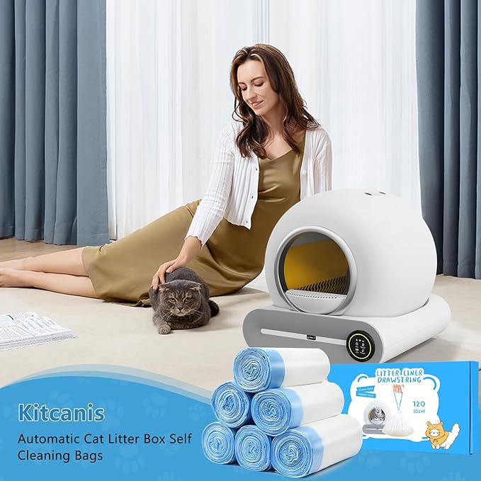 - Compatibility: Litter box bags, measuring 17.7" x 19.68", are designed specifically for MeoWant MW-SC01, MW-SC02, and MW-LR01 models. Ensure a perfect fit by referring to the provided images. Kitcanis Litter box liners are not suitable for all automatic litter box self cleaning—please verify compatibility with your model before proceeding.