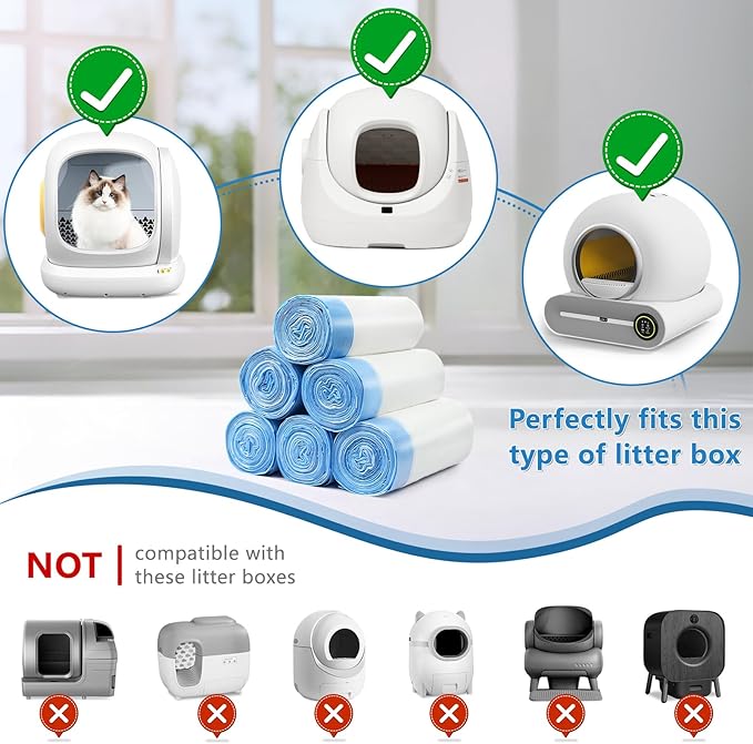 - Odor Prevention: Designed to fit various cat litter box automatic cleaning, these Cat waste bags help minimize odors and prevent leaks and spills. Maintain a fresher home environment by replacing the litterbox liner bags every 4 to 5 days, or as needed based on the number and size of your cats. Enhance indoor air quality and support your cat’s health with our effective, odor-reducing cat litter box bags.