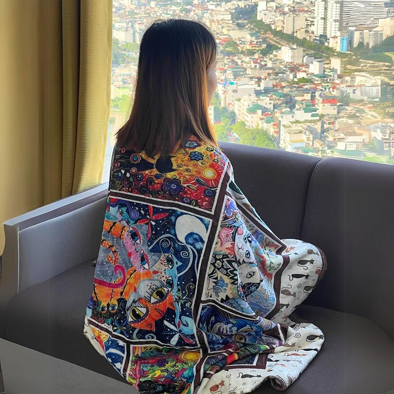 - Versatile & Stylish Design: The colorful cat print adds a playful and vibrant touch to any room, making it an ideal boho throw for your couch, bed, or even as a decorative piece in your living space. Available in multiple sizes, it’s perfect for children, adults, and the elderly alike.