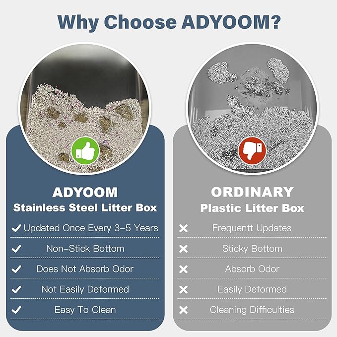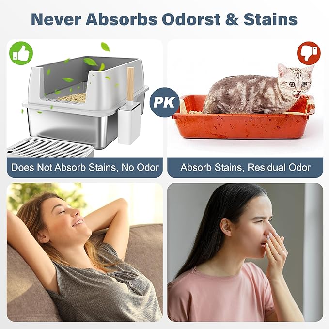 - ๐๐ซ๐๐ฆ๐ข๐ฎ๐ฆ ๐๐จ๐ฅ๐ข๐ ๐๐ญ๐ฎ๐ซ๐๐ฒ ๐๐ญ๐๐ข๐ง๐ฅ๐๐ฌ๐ฌ ๐๐ญ๐๐๐ฅ ๐๐๐ญ๐๐ซ๐ข๐๐ฅ: The metal cat litter box with lid is made of thickened stainless steel to ensure durability and is long-lasting for 3-5 years, with widened curling edge without hurting your hands or pets. Compared with plastic cat litter boxes, our stainless steel cat litter box is Non-Stick Surface, Scratch-Resistan, and Easy Cleaning.
