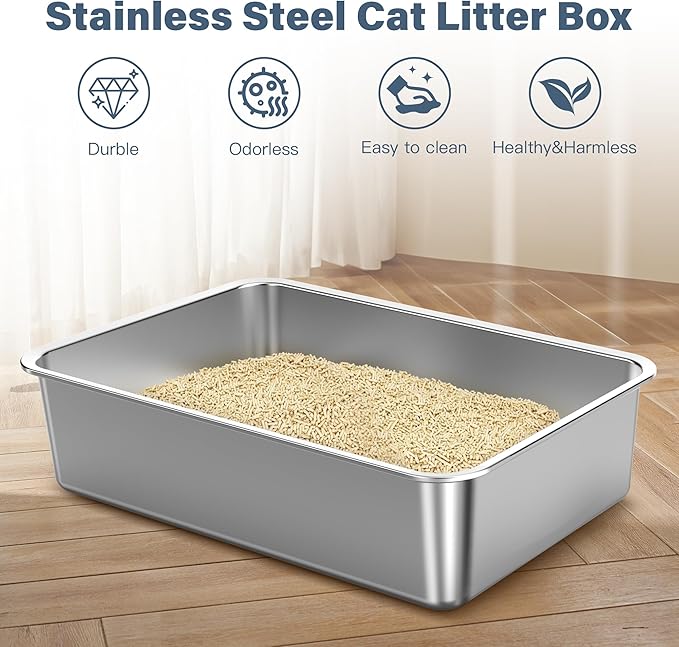 - ππππ’π§π₯ππ¬π¬ πππππ₯ πππ ππ’ππππ« ππ¨π±: Our large cat litter box is crafted from durable stainless steel, ensuring itβs long-lasting, rust-resistant, scratchproof, and eco-friendly.