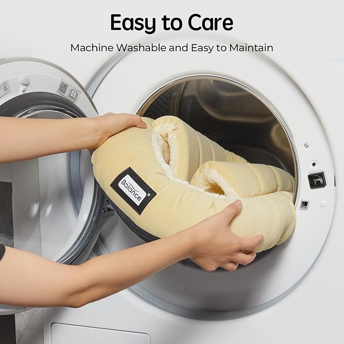 BALANCE 2 in 1 Cat Bed Cave for Kittens and Small Dogs, Cat Tents for Indoor Cats, Covered Cat Beds with Removable Cushion, Calming Cat Nest, Cat Hideaway, Washable Cat House with Non-Slip Bottom