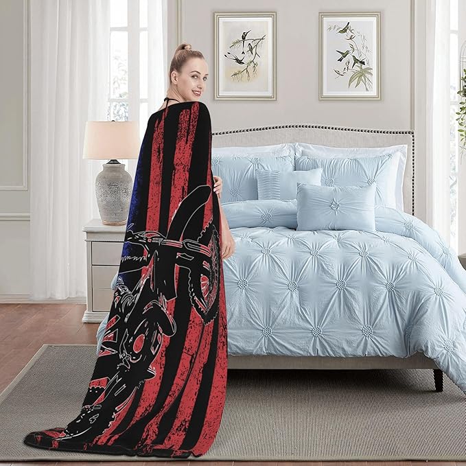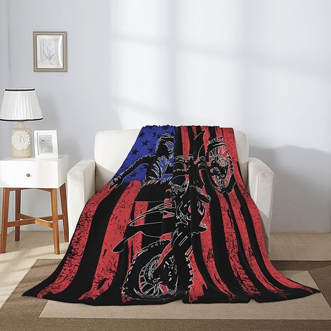 Motocross Flag Soft Throw Blanket Flannel Fleece Blankets Warm Cozy Lightweight Fuzzy Blanket for Bed Sofa Couch Home Decor 80"X60"