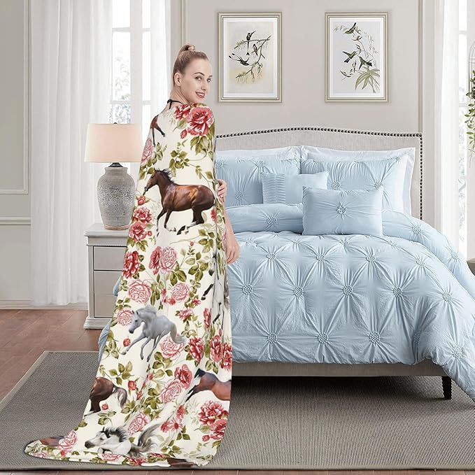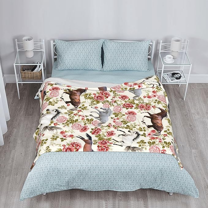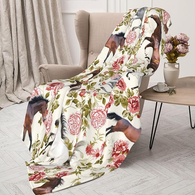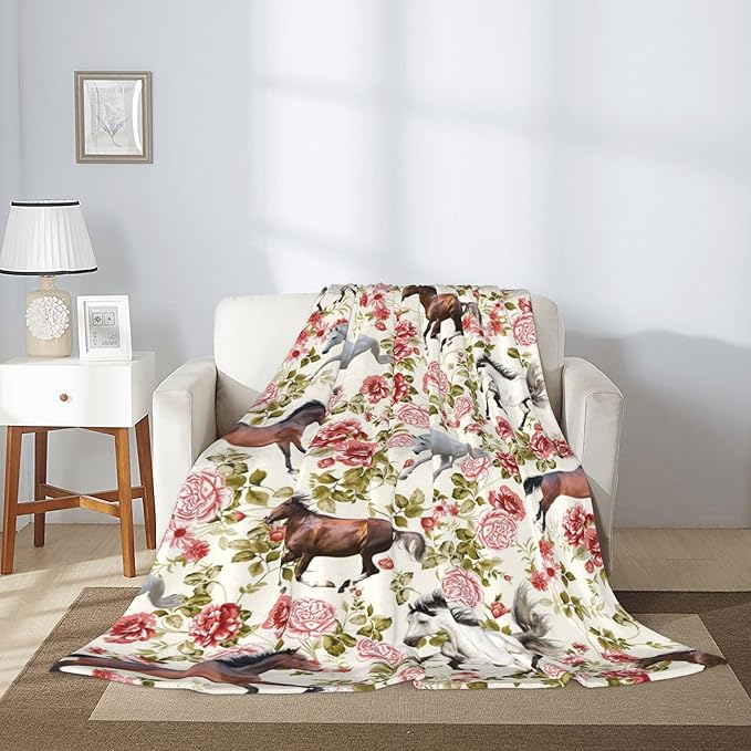 Horse Soft Throw Blanket Flannel Fleece Blankets Warm Cozy Lightweight Fuzzy Blanket for Bed Sofa Couch Home Decor 80"X60"