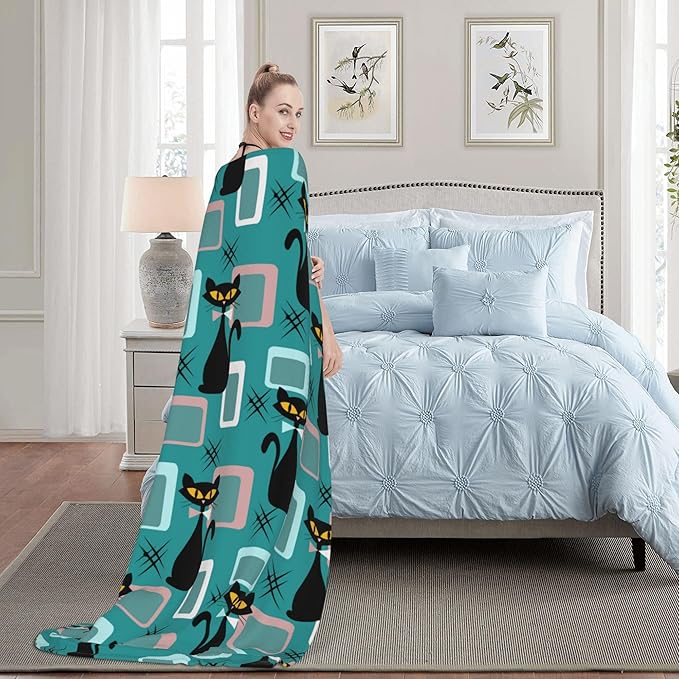Medieval Cat Soft Throw Blanket Flannel Fleece Blankets Warm Cozy Lightweight Fuzzy Blanket for Bed Sofa Couch Home Decor 80"X60"