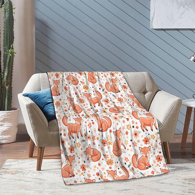 Fox Soft Throw Blanket Flannel Fleece Blankets Warm Cozy Lightweight Fuzzy Blanket for Bed Sofa Couch Home Decor 60"X50"