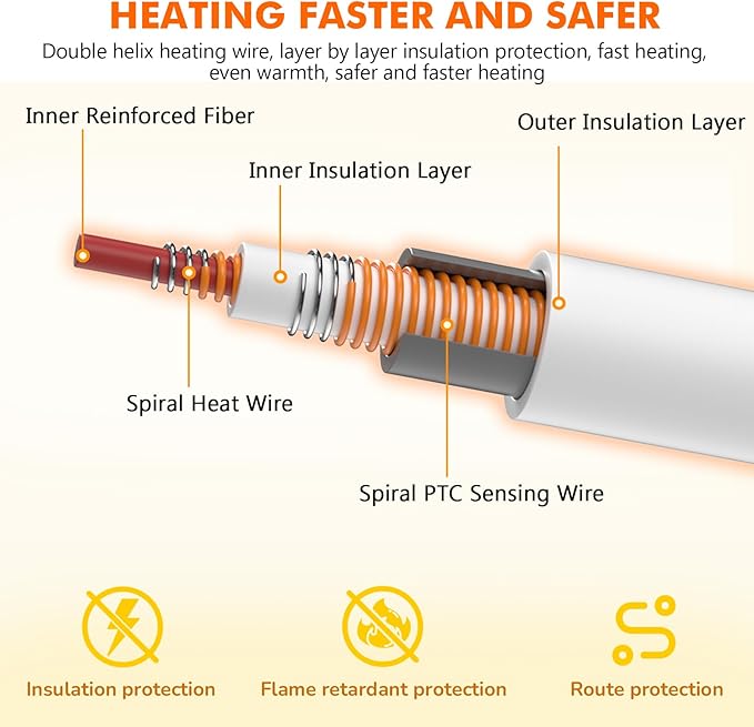 - Material : Waterproof PVC, Flame Retardant Cotton, Premium Heating Wire, Flannel Cover, Dual-Resistant Stainless Steel Cable Waterproof PVC, Flame Retardant Cotton, Premium Heating Wire, Flannel Cover, Dual-Resistant Stainless Steel Cable