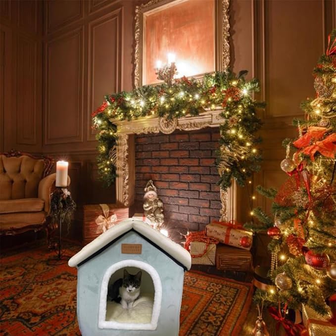 - 【Cozy House】The stylish and charming cat tent delivers a pleasant and snug place for your pet to relax indoors. The plaid bed’s plush fabric is designed to stay warmer, providing superior coziness for your furry friend.