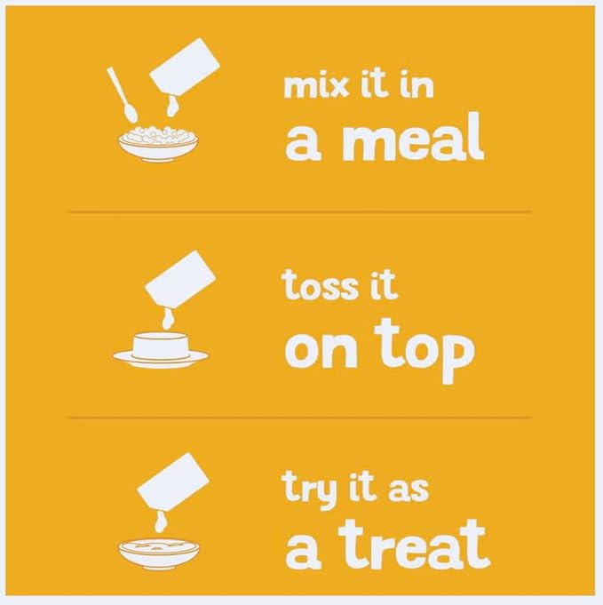 - 3-1.55oz. Cat food topper Enticing Chicken: This pureed cat food complement is blended with coconut milk pouchesnd is intended for adult cats as a snack or a meal topper