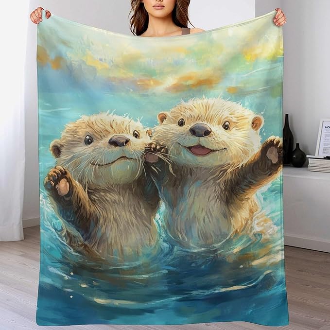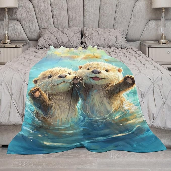 Otter Gifts for Girls & Boys - Soft, Warm Fleece & Flannel Plush Blankets for Bed, Sofa, Couch - 60"x80"