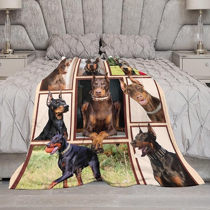 Doberman Blanket Dog Doberman Gifts for Girls Boys Woman Kids Doberman Lover Throw Blankets Soft Blanket Warm Fleece Flannel Plush Blankets for Bed Sofa Couch 50"x60"