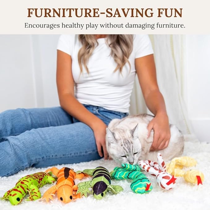 - These toys are designed as cat chew toys for indoor cats, providing stimulation & helping to alleviate boredom. The unique shapes of the lizards and snakes are ideal for cats that love to chew, pounce, and chase. teething toys for kittens cat pet toy