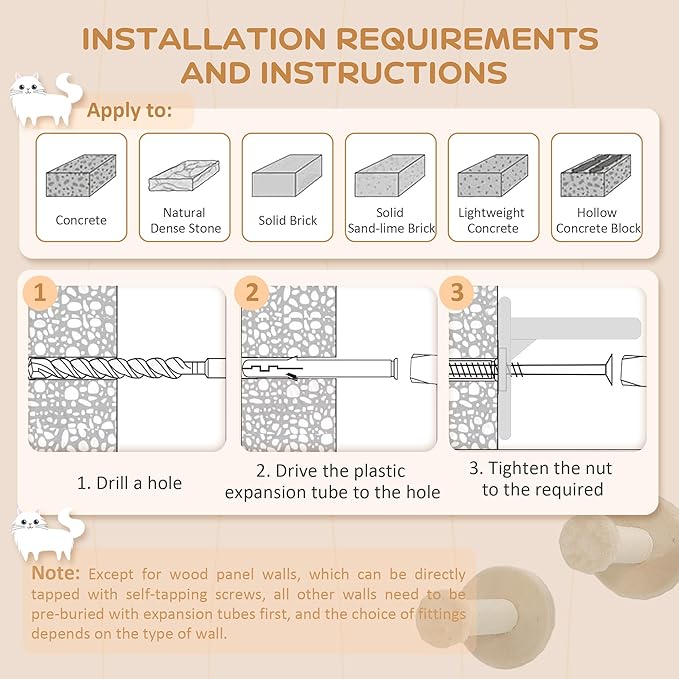 - Decor-Friendly: With a plush beige finish, our cat shelf set seamlessly blends with your home decor while satisfying your cat's natural climbing instincts.